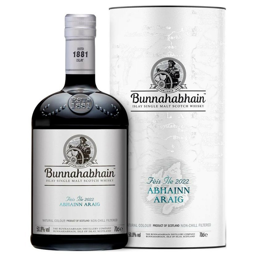 Tento sametově bohatý dram Bunnahabhain Feis Ile 2022 Abhainn Araig, což ve skotské gaelštině znamená „řeka Araig“, je inspirován vodami ostrova Islay. Tato whisky, vytvořená na oslavu Feis Ile 2022, zrála v sudech po bourbonu a v oktávových sudech po sherry Pedro Ximenez, což jí dodává nerafinovaný, sherry, odvážný a komplexní charakter.